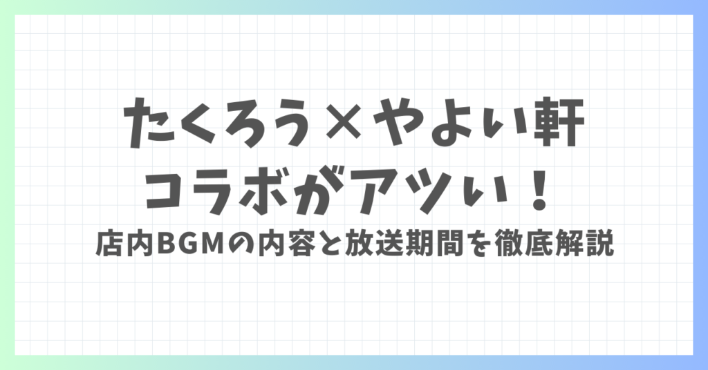 たくろう×やよい軒のコラボがアツい!店内BGM「やよい軒プレイリスト」の内容と放送期間を徹底解説