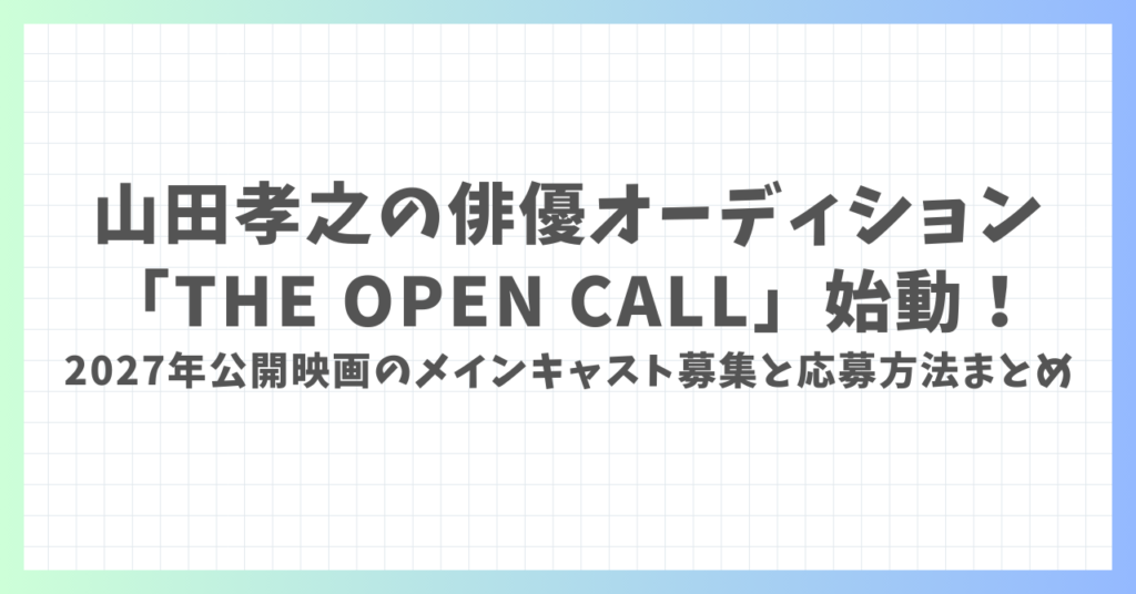山田孝之が仕掛ける俳優オーディション「THE OPEN CALL」始動!2027年公開映画のメインキャスト募集と応募方法まとめ