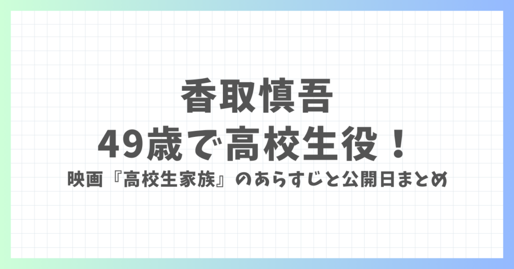 香取慎吾が49歳で高校生役!実写映画『高校生家族』のあらすじと公開日まとめ