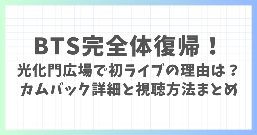 BTS完全体復帰!光化門広場で初ライブの理由は?カムバック詳細と視聴方法まとめ