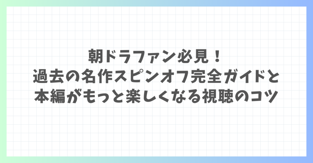 朝ドラファン必見!過去の名作スピンオフ完全ガイドと本編がもっと楽しくなる視聴のコツ