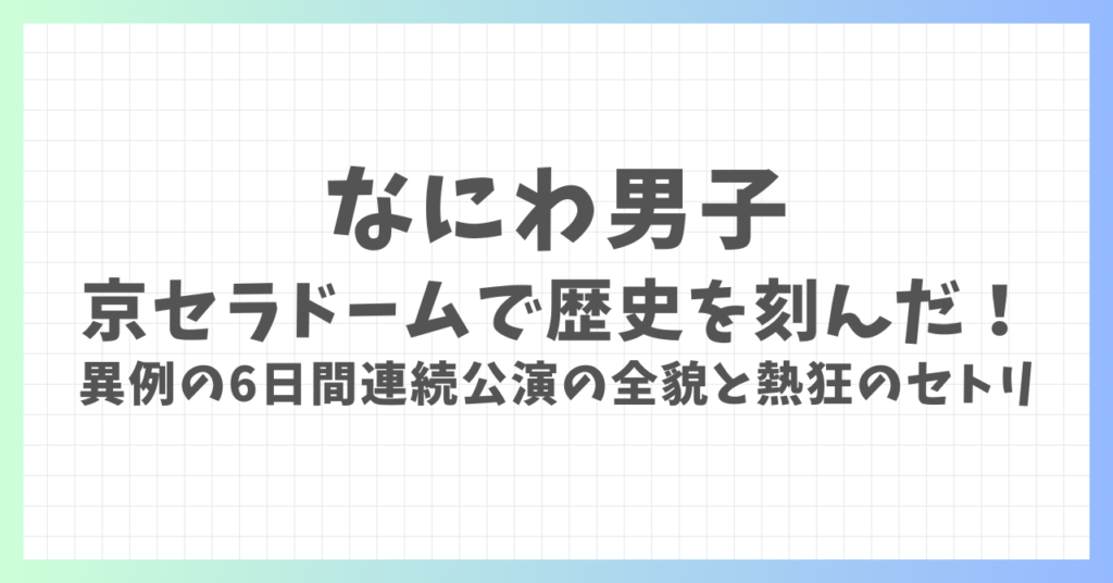 なにわ男子が京セラドームで歴史を刻んだ!異例の6日間連続公演「VoyAGE」の全貌と熱狂のセトリまとめ
