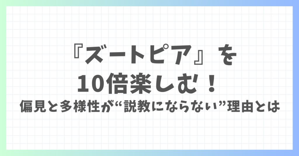 『ズートピア』を10倍楽しむ!偏見と多様性が“説教にならない”理由をやさしく解説