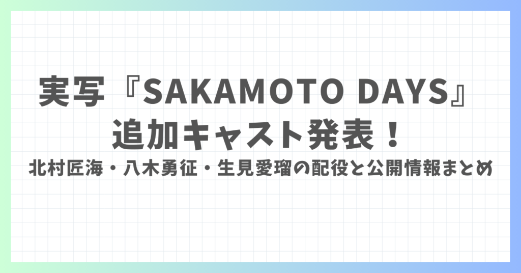 実写『SAKAMOTO DAYS』追加キャスト発表!北村匠海・八木勇征・生見愛瑠の配役と公開情報まとめ