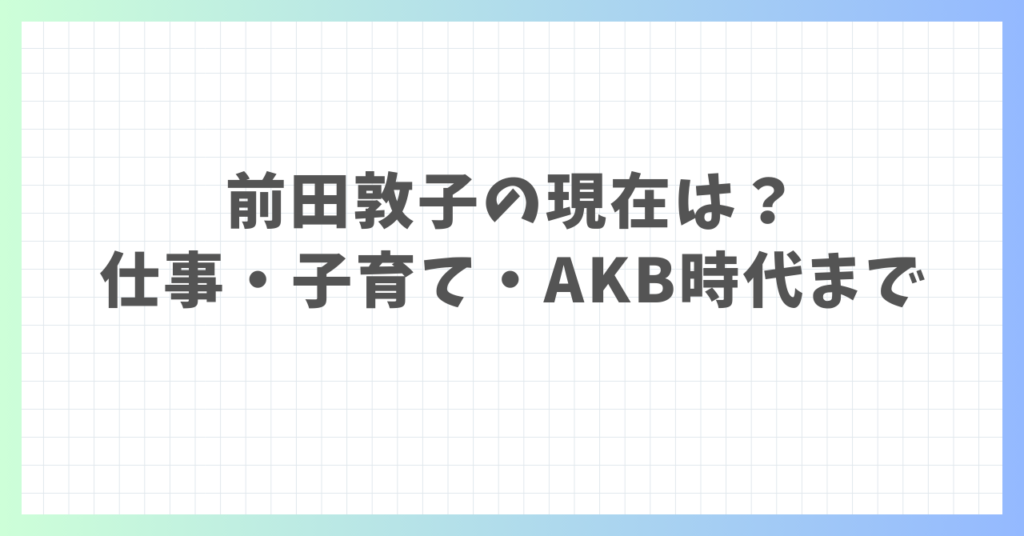 前田敦子の現在は?仕事・子育て・AKB時代まで徹底まとめ