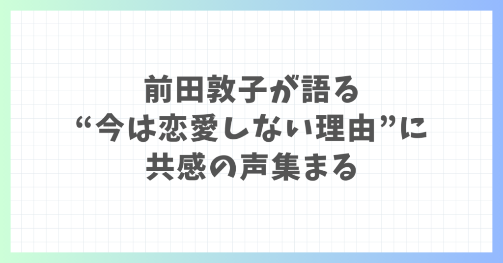 前田敦子が語る“今は恋愛しない理由”に共感の声集まる