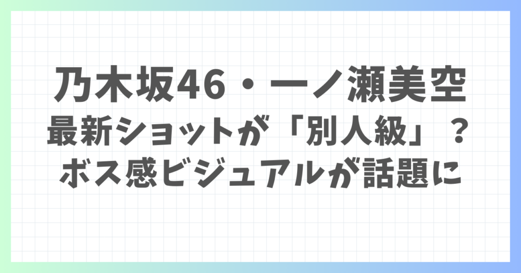 乃木坂46・一ノ瀬美空、最新ショットが「別人級」?ボス感ビジュアルが話題に