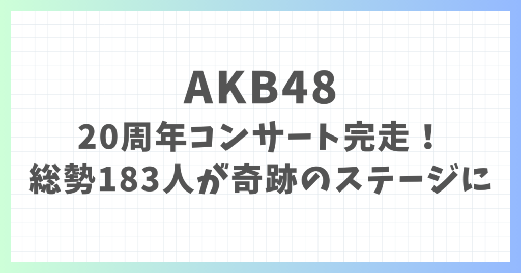 AKB48、20周年コンサート完走!総勢183人が奇跡のステージに