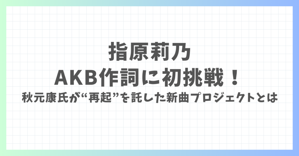 指原莉乃がAKB作詞に初挑戦!秋元康氏が“再起”を託した新曲プロジェクトとは