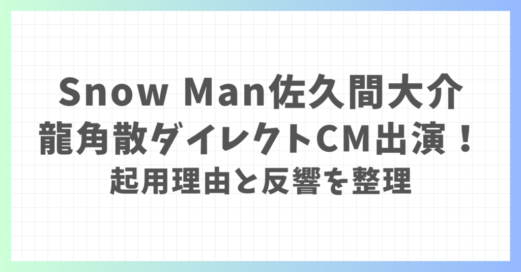 Snow Man佐久間大介、龍角散ダイレクトCM出演が話題!起用理由と反響を整理