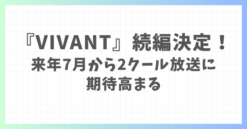 VIVANT続編決定!来年7月から2クール放送に期待高まる
