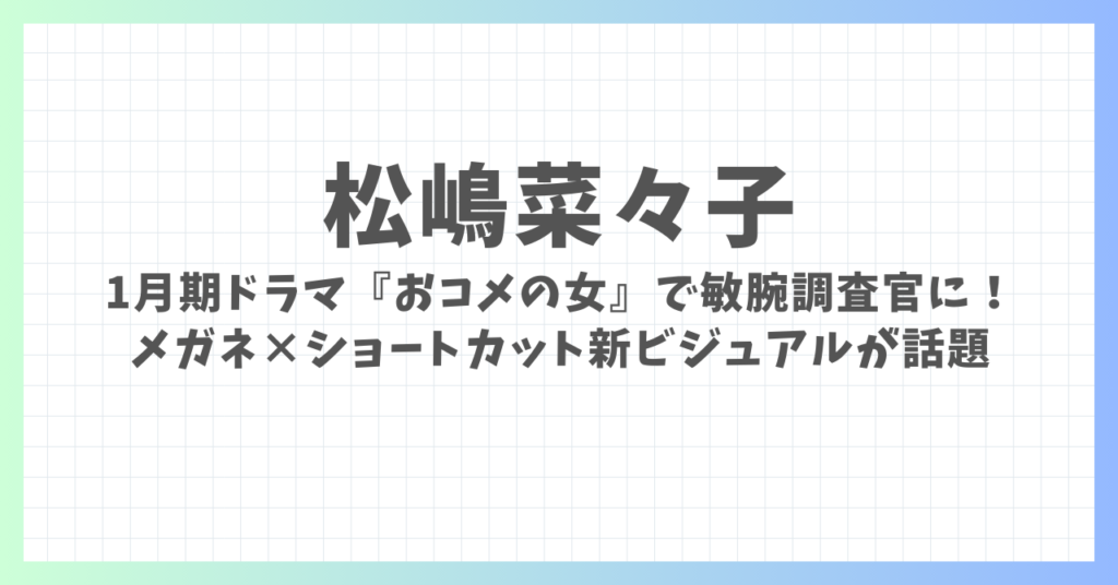 松嶋菜々子さんが、2026年1月期のテレビ朝日系木曜ドラマ『おコメの女-国税局資料調査課・雑国室-』で主演を務めることが発表されました。 役どころは、東京国税局で“マルサをしのぐ”エリート集団を率いる敏腕調査官・米田正子。 メガネ×ショートカット...