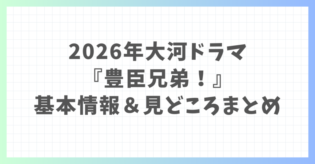 2026年大河ドラマ『豊臣兄弟!』基本情報&見どころまとめ