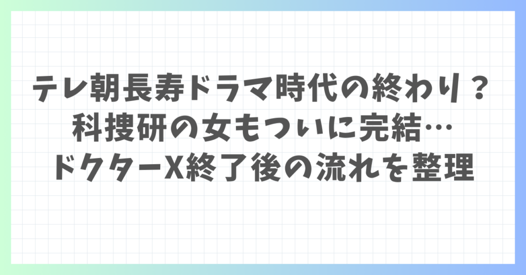 科捜研の女もついに完結…テレ朝長寿ドラマ時代の終わり?ドクターX終了後の流れを整理