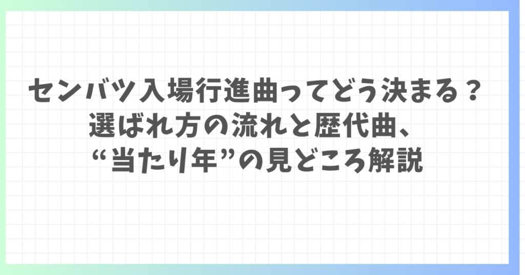センバツ入場行進曲ってどう決まる?選ばれ方の流れと歴代曲、“当たり年”の見どころ解説