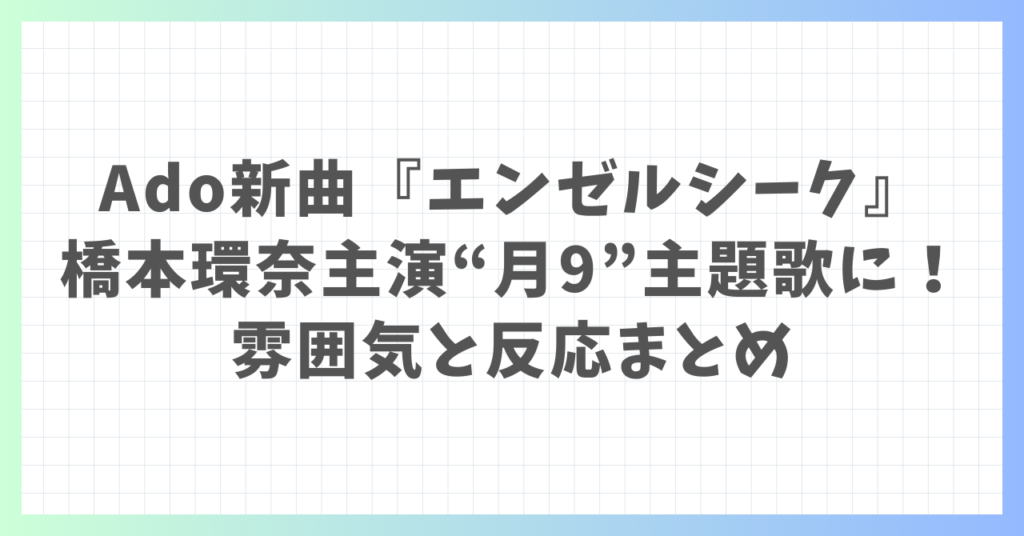 Adoが橋本環奈主演“月9”主題歌に決定!新曲「エンゼルシーク」雰囲気と反応まとめ