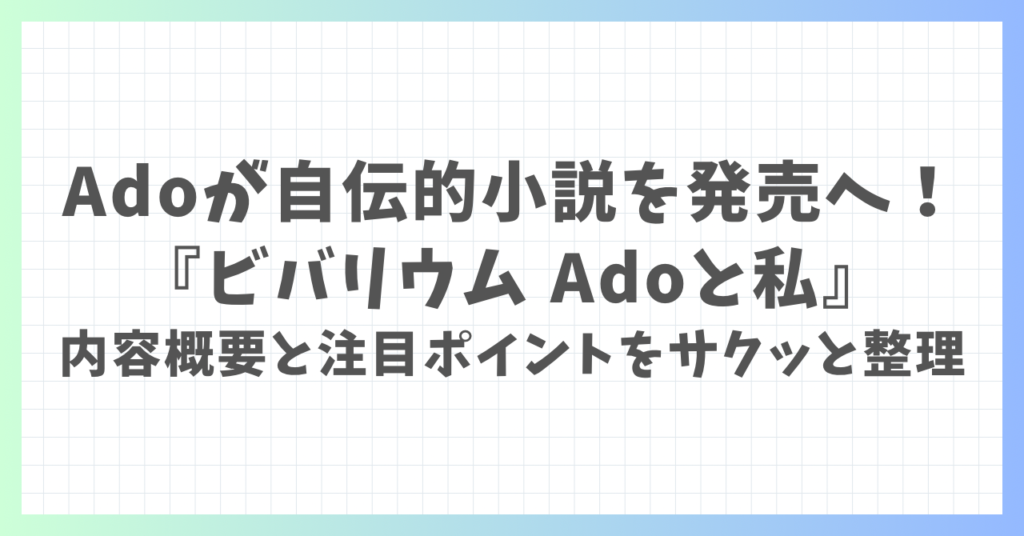 Adoが自伝的小説を発売へ!『ビバリウム Adoと私』内容概要と注目ポイントをサクッと整理