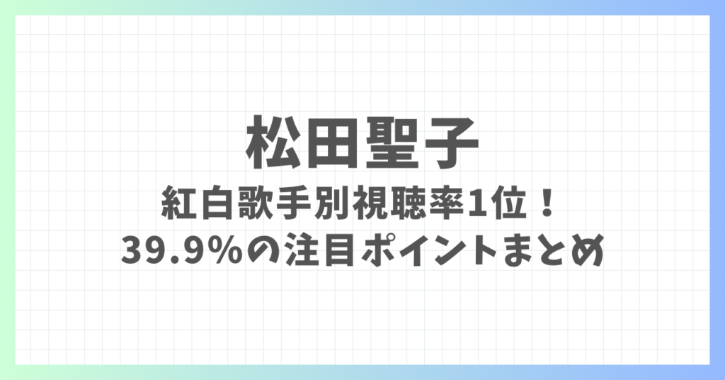 松田聖子が紅白歌手別視聴率1位!39.9%の注目ポイントまとめ