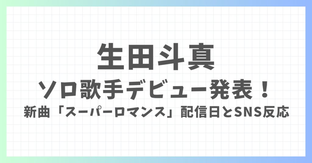 生田斗真がソロ歌手デビュー発表!新曲「スーパーロマンス」配信日とSNS反応まとめ