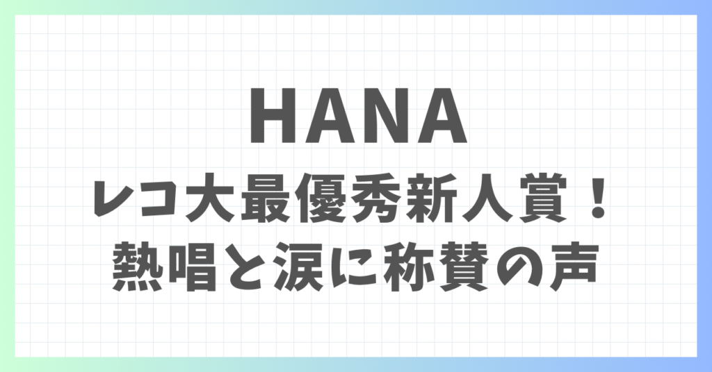 HANAがレコ大最優秀新人賞を受賞!熱唱と涙に称賛の声