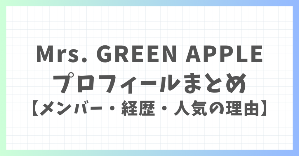Mrs. GREEN APPLE(ミセス)プロフィールまとめ【メンバー・経歴・人気の理由】