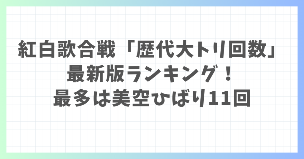 紅白歌合戦「歴代大トリ回数」最新版ランキング!最多は美空ひばり11回