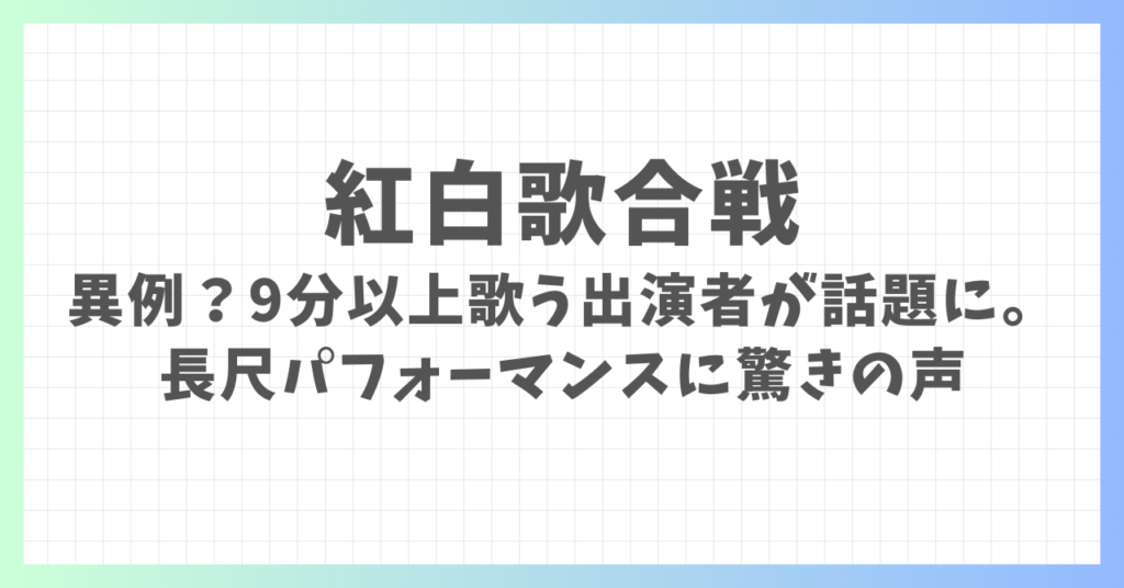 紅白歌合戦で異例?9分以上歌う出演者が話題に。長尺パフォーマンスに驚きの声
