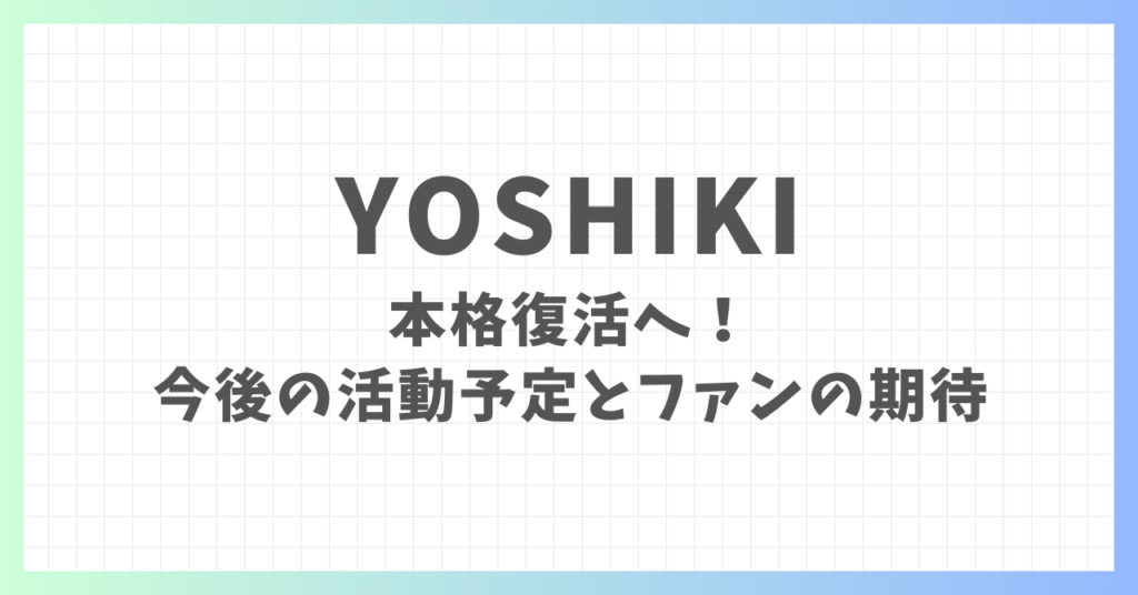 YOSHIKIが本格復活へ!今後の活動予定とファンの期待まとめ