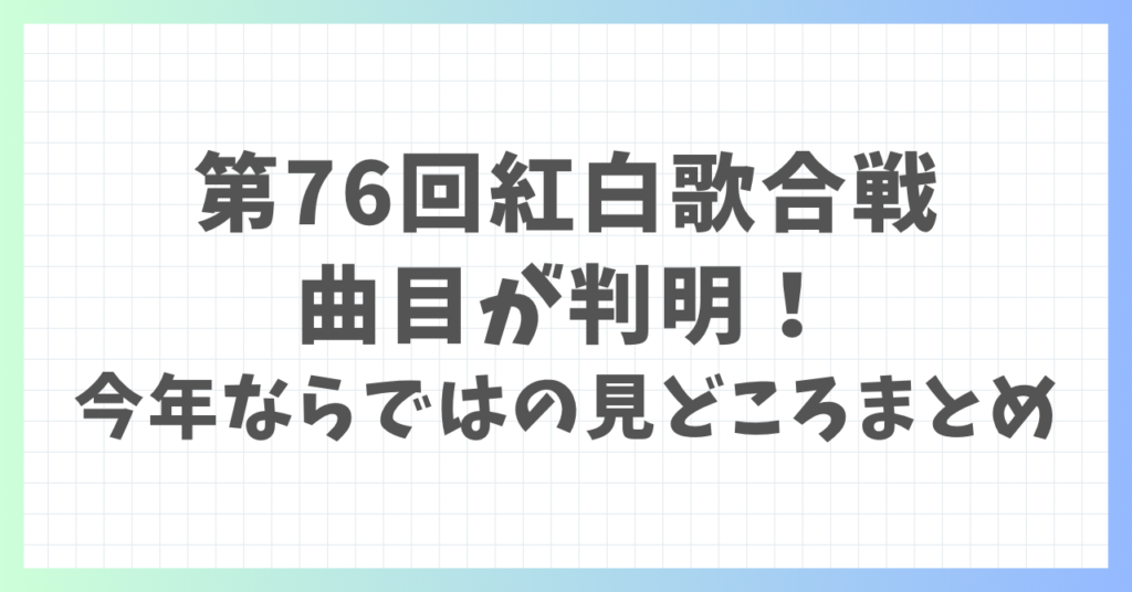 年末の風物詩「第76回NHK紅白歌合戦」、ついに曲目が発表されて話題になっています。 推しの歌唱曲が分かった瞬間のテンション、上がりますよね。 この記事では、今年の曲目発表で注目したいポイントと「今年ならでは」の見どころを、サクッと整理してまと... -