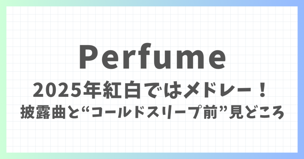 2025年の第76回NHK紅白歌合戦でPerfumeがメドレーを披露します。 しかもPerfumeは、2025年末でいったん活動を区切り、2026年から「コールドスリープ(活動休止)」に入ることを公式に発表済み。 つまり今年の紅白は、“節目”として見逃せないステージになり... -