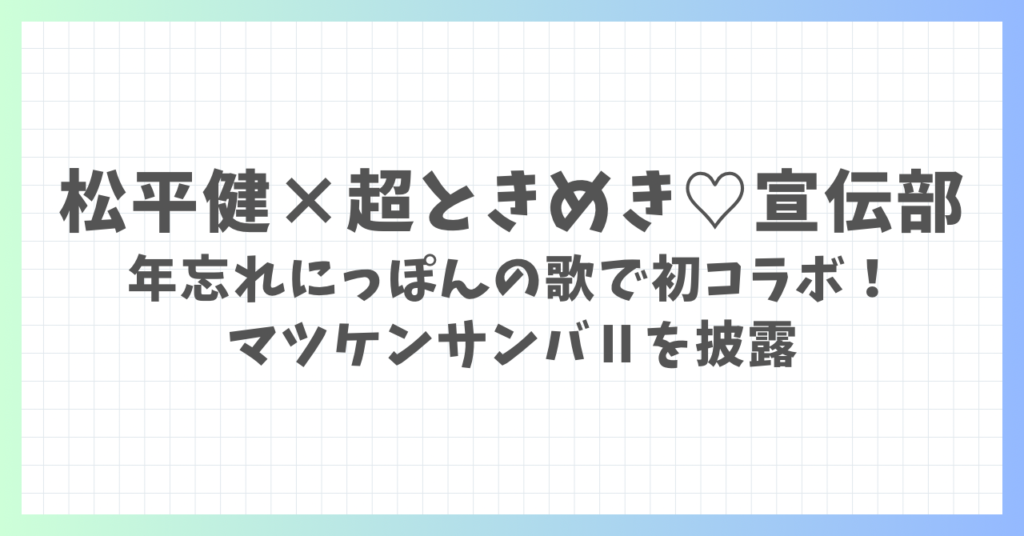 年末の歌番組「年忘れにっぽんの歌」で、松平健さんと超ときめき♡宣伝部(超とき宣)が“初コラボ”すると発表され話題になっています。 しかも披露するのは、あの「マツケンサンバⅡ」! 年末らしいお祭り感と、アイドルの“最上級にかわいい”世界観が合体す... -
