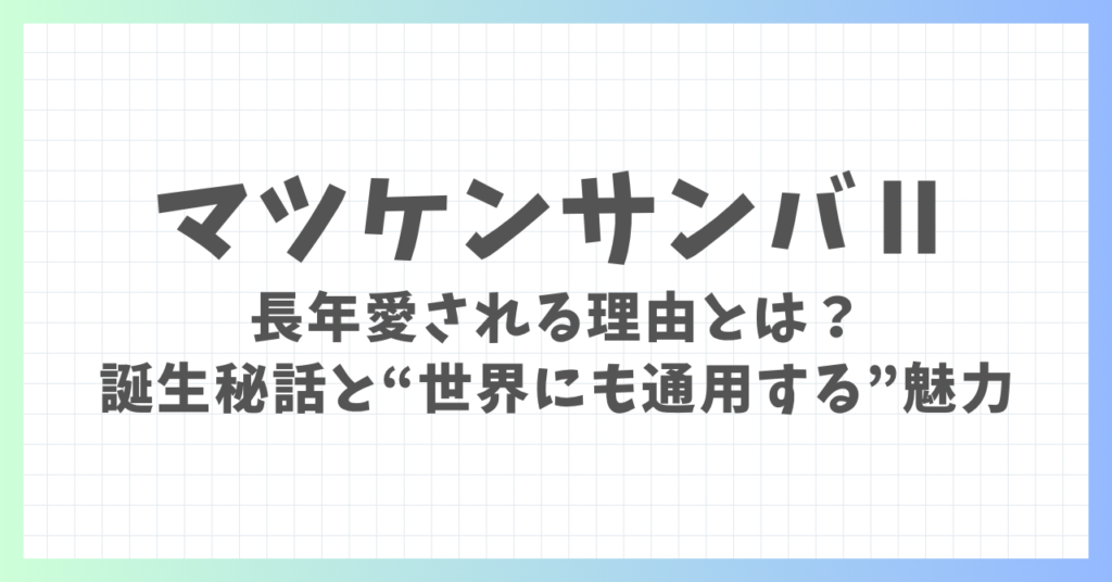 年末やお祭りで流れるたび、なぜか元気が出てしまう「マツケンサンバⅡ」。 日本ではすっかり定番曲ですが、近年は海外の人が初めて聴いても強烈に刺さることが話題になり、「世界にも通用するエンターテインメントなのでは?」という声も出ています。 この... -