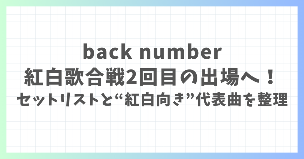 back numberが紅白歌合戦2回目の出場へ!セットリストと“紅白向き”代表曲を整理