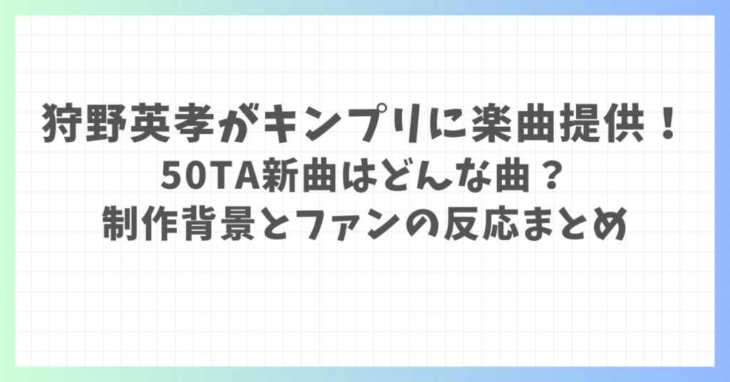 狩野英孝がキンプリに楽曲提供!50TA新曲はどんな曲?制作背景とファンの反応まとめ