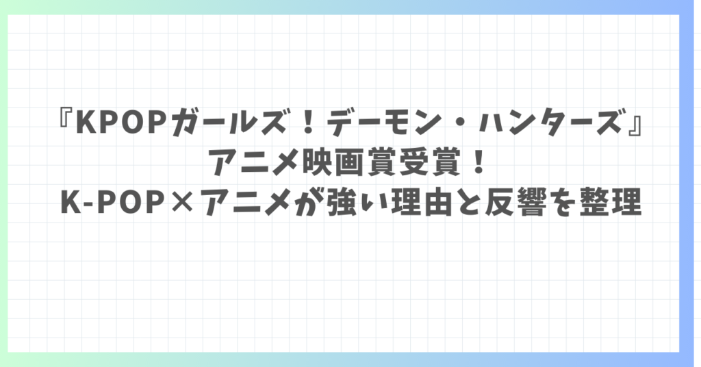 『KPOPガールズ!デーモン・ハンターズ』がアニメ映画賞受賞!K-POP×アニメが強い理由と反響を整理