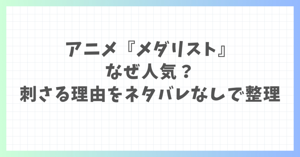 アニメ『メダリスト』なぜ人気?刺さる理由をネタバレなしで整理