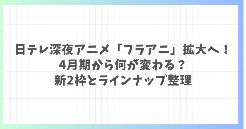日テレ深夜アニメ「フラアニ」拡大へ!4月期から何が変わる?新2枠とラインナップ整理