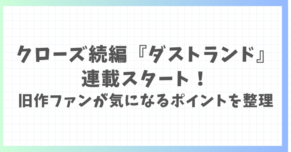 クローズ続編『ダストランド』連載スタート!旧作ファンが気になるポイントを整理