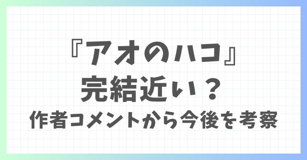 『アオのハコ』完結近い?作者コメントから今後を考察