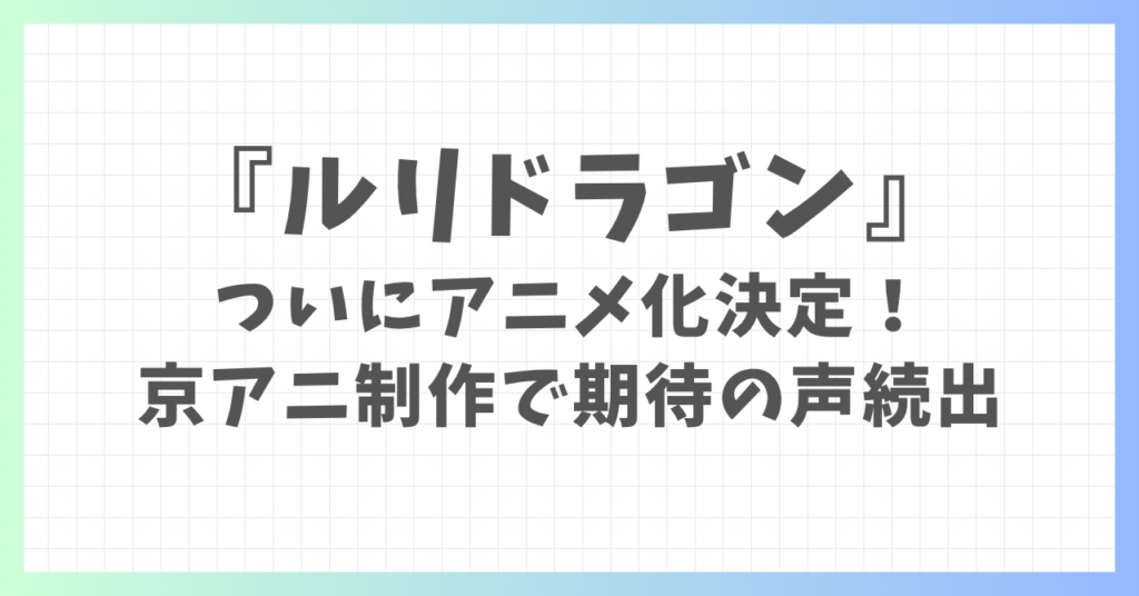 『ルリドラゴン』ついにアニメ化決定!京アニ制作で期待の声続出