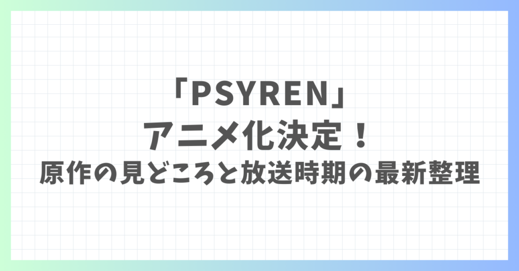 「PSYREN」アニメ化決定!原作の見どころ3選と放送時期の最新整理