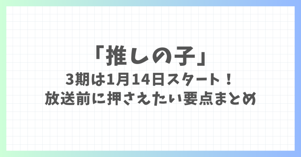 「推しの子」3期は1月14日スタート!放送前に押さえたい要点まとめ