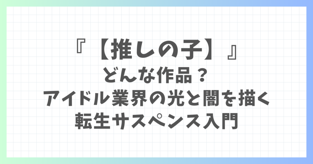 「推しの子」ってどんな作品?アイドル業界の光と闇を描く転生サスペンス入門