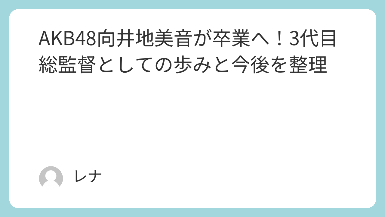 この記事では、15期生としての加入からセンター、そして3代目総監督として約5年間グループを支えた歩みを振り返りながら、“ポスト総監督時代”のAKB48に向けて、向井地さんが残したものを整理していきます。