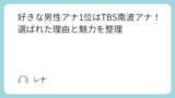 2位には同じくTBSの江藤愛アナ、3位に有働由美子アナなど、ここ数年は“落ち着いた安心感×親しみ”系が強い傾向です。