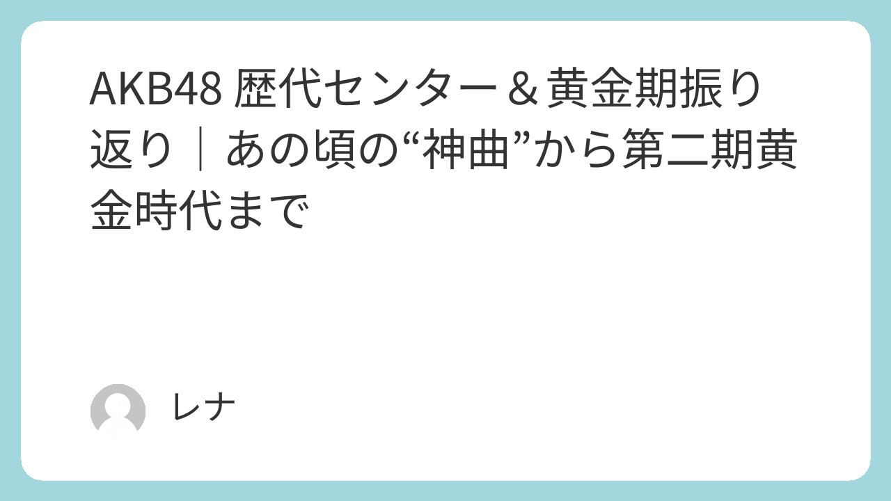 「センターが変わるとAKBが変わる」、だからこそ、自分の推しセンターの時代が“青春”として心に残っているのかもしれません。
