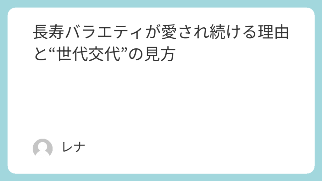 長寿バラエティが愛され続ける理由と“世代交代”の見方