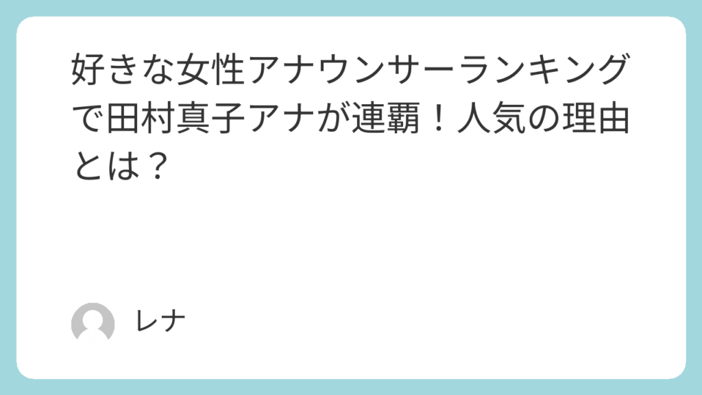 好きな女性アナウンサーランキングで田村真子アナが連覇!人気の理由とは?